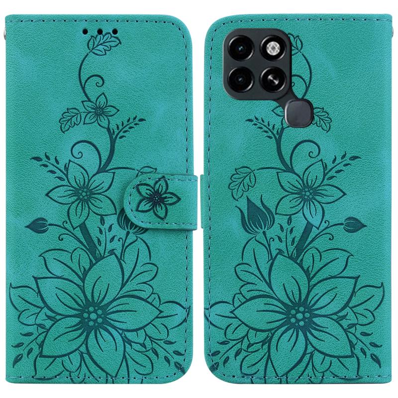 For Infinix Smart 6 Lily Embossed Leather Phone Case(Green)
