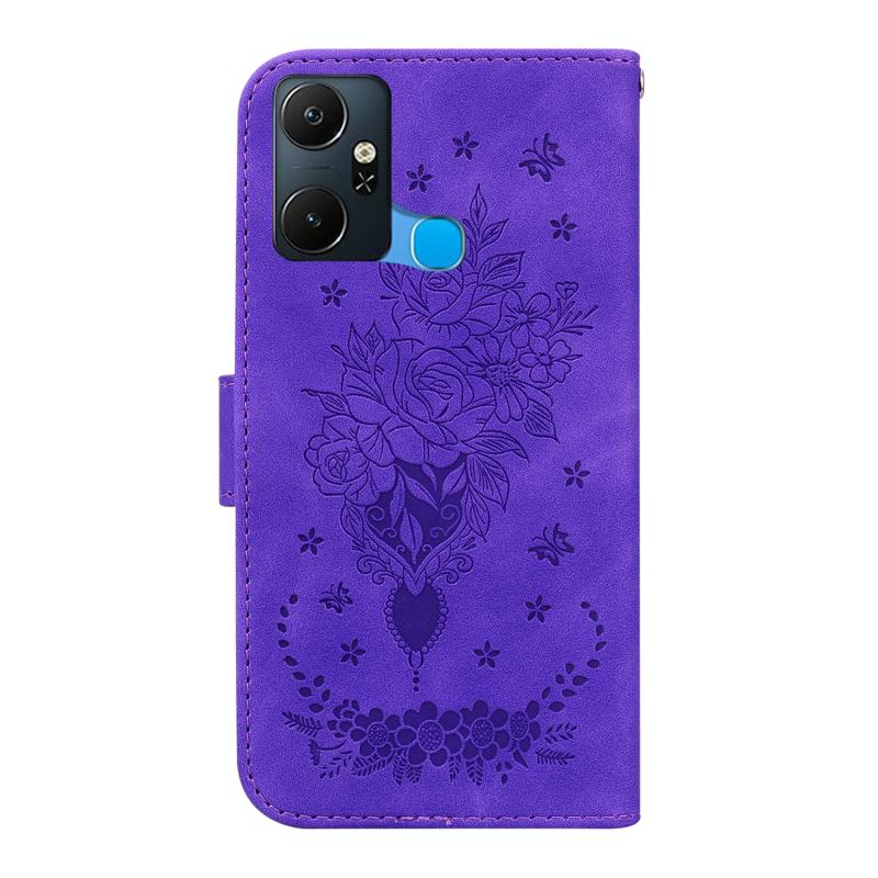 For Infinix Smart 6 Plus Butterfly Rose Embossed Leather Phone Case(Purple)