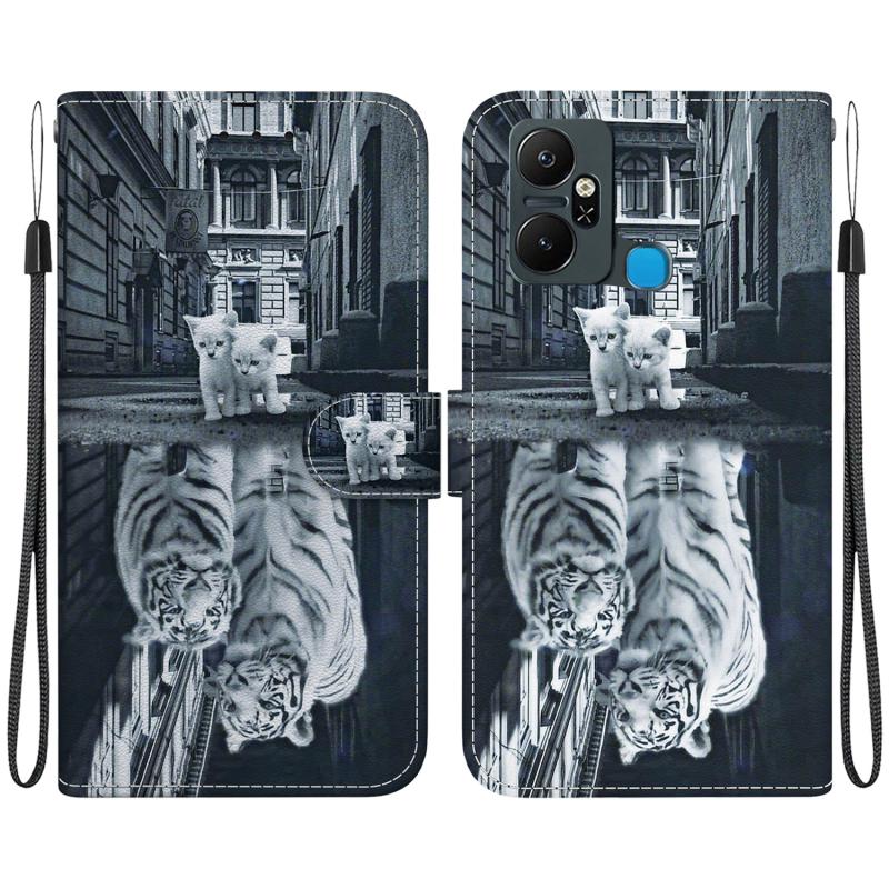 For Infinix Smart 6 Plus Crystal Texture Colored Drawing Leather Phone Case(Cat Tiger Reflection)
