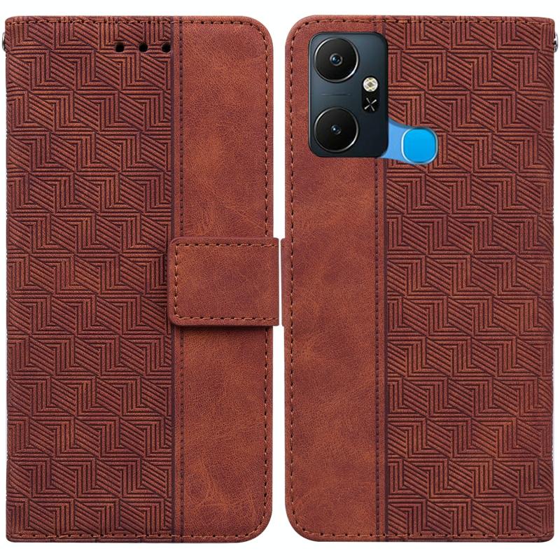 For Infinix Smart 6 Plus Geometric Embossed Flip Leather Phone Case(Brown)