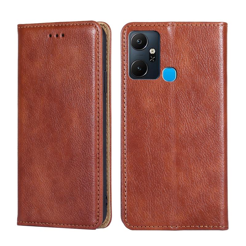 For Infinix Smart 6 plus Gloss Oil Solid Color Magnetic Leather Phone Case(Brown)