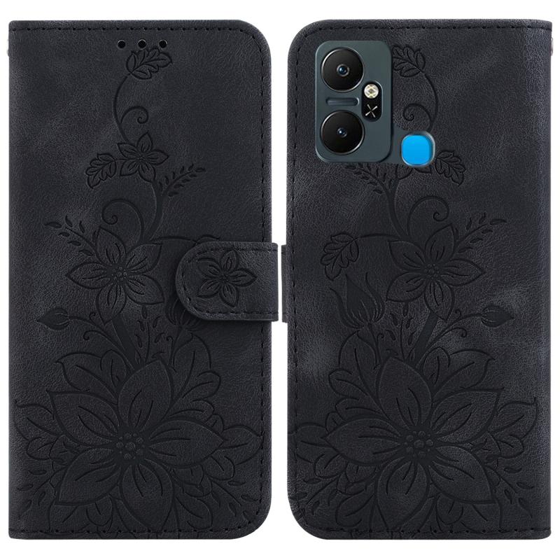 For Infinix Smart 6 Plus Lily Embossed Leather Phone Case(Black)