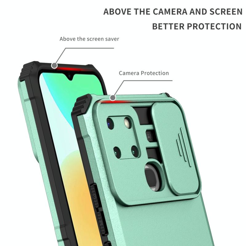 For Infinix Smart 6 Stereoscopic Holder Sliding Camshield Phone Case(Light Blue)