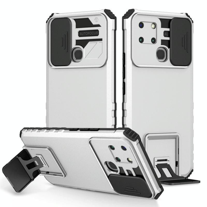 For Infinix Smart 6 Stereoscopic Holder Sliding Camshield Phone Case(White)