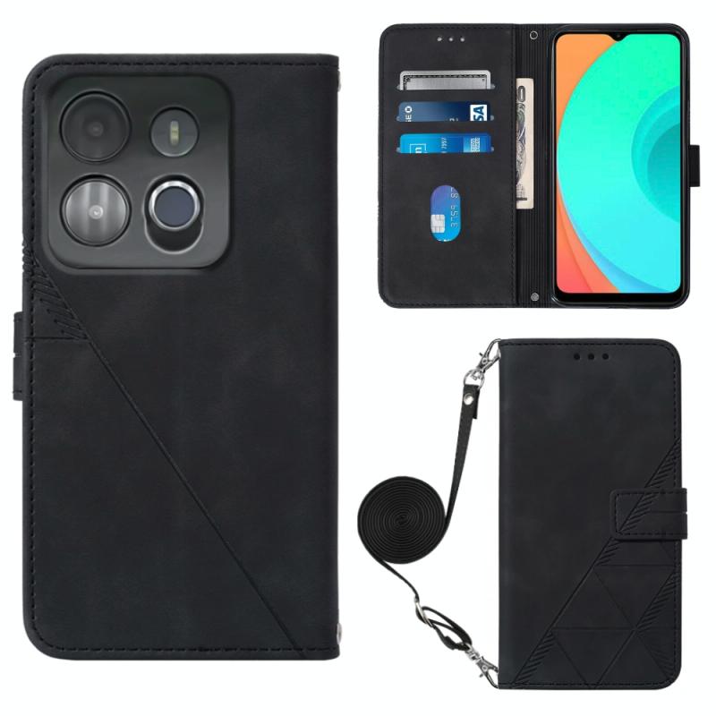 For Infinix Smart 7 Crossbody 3D Embossed Flip Leather Phone Case(Black)
