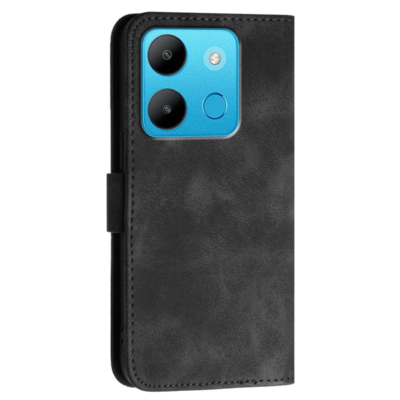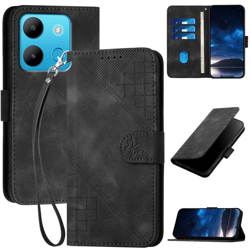 For Infinix Smart 7 Global Grid Butterfly Embossed Pattern Leather Phone Case with Lanyard(Black)