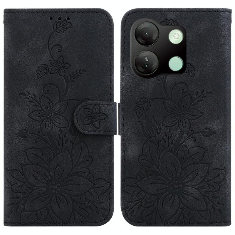 For Infinix Smart 7 HD Lily Embossed Leather Phone Case(Black)