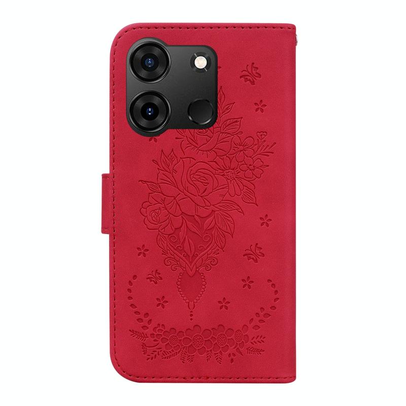 For Infinix Smart 7 India/7 Plus Butterfly Rose Embossed Leather Phone Case(Red)