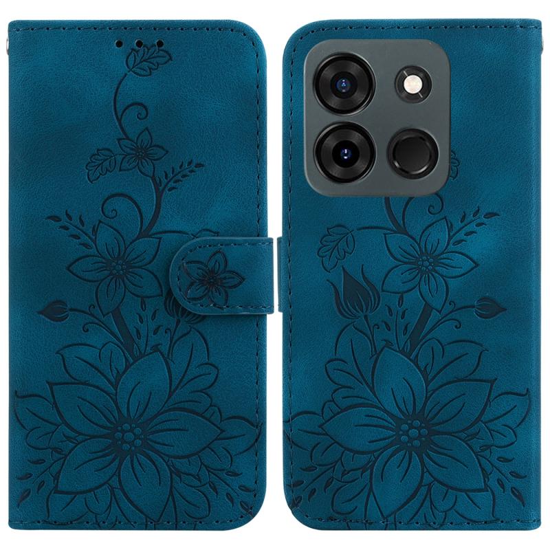 For Infinix Smart 7 India / Smart 7 Plus Lily Embossed Leather Phone Case(Dark Blue)
