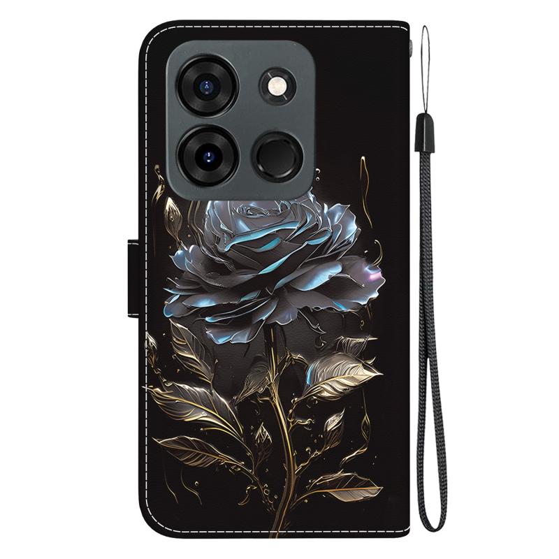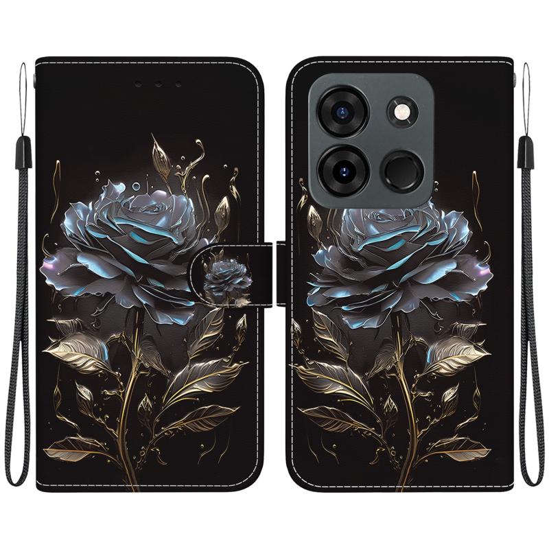 For Infinix Smart 7 Indian Crystal Texture Colored Drawing Leather Phone Case(Black Rose)