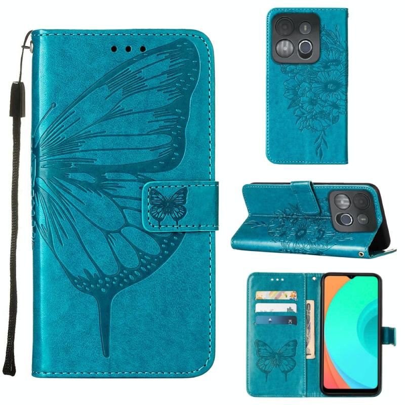 For Infinix Smart 7 X6515 Embossed Butterfly Flip Leather Phone Case(Blue)