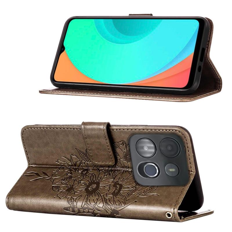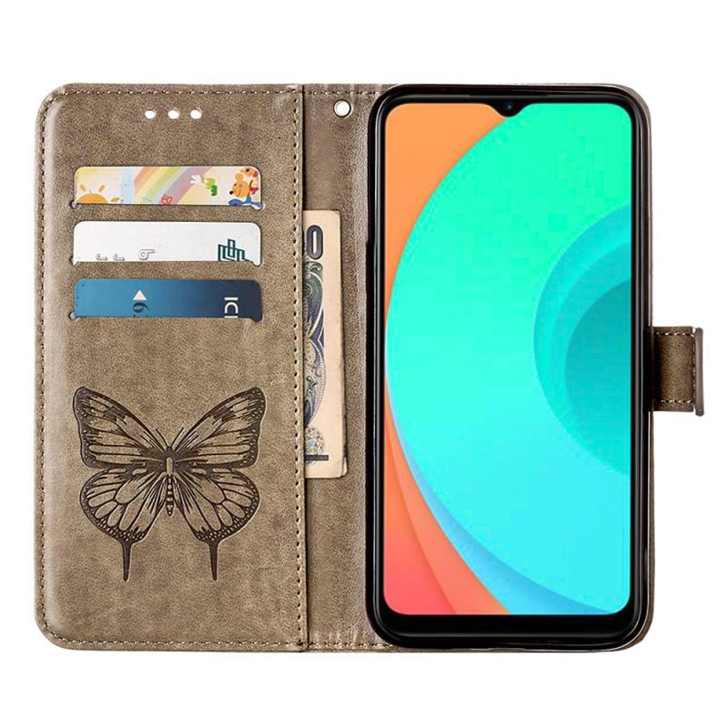 For Infinix Smart 7 X6515 Embossed Butterfly Flip Leather Phone Case(Grey)