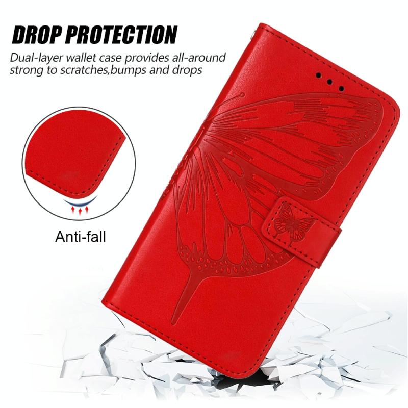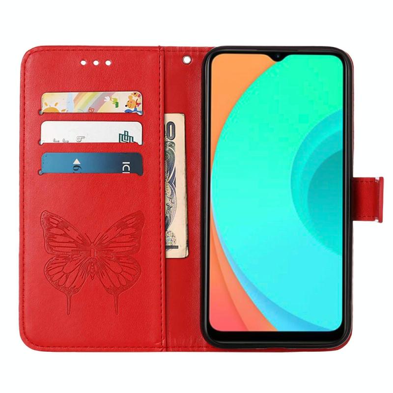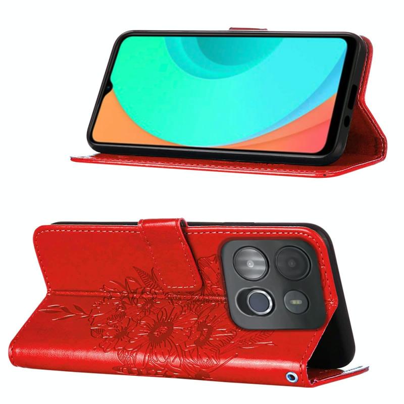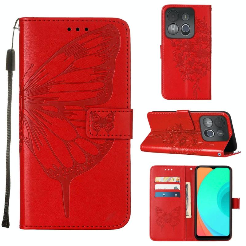 For Infinix Smart 7 X6515 Embossed Butterfly Flip Leather Phone Case(Red)