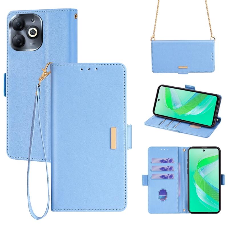 For Infinix Smart 8 4G Crossbody Chain Leather Phone Case(Blue)