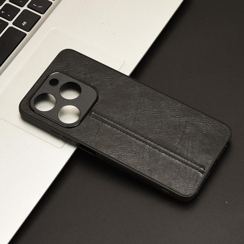 For Infinix Smart 8 Cow Pattern Sewing Back Cover Phone Case(Black)