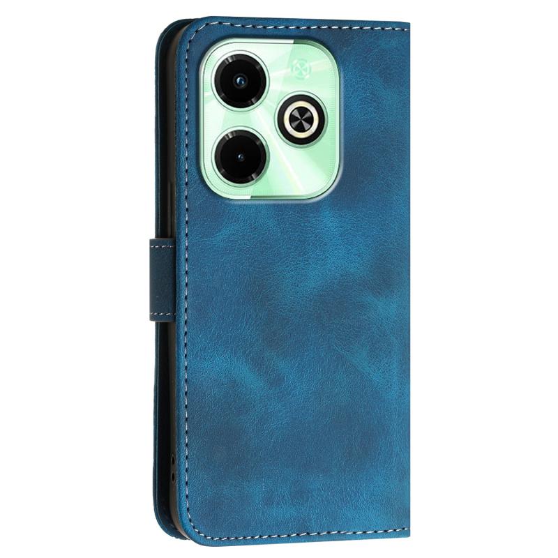 For Infinix Smart 8 Plus 4G Grid Butterfly Embossed Pattern Leather Phone Case with Lanyard(Dark Blue)