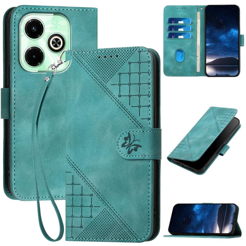 For Infinix Smart 8 Plus 4G Grid Butterfly Embossed Pattern Leather Phone Case with Lanyard(Light Blue)