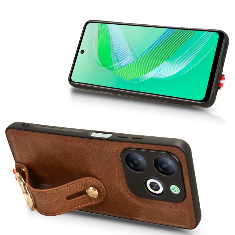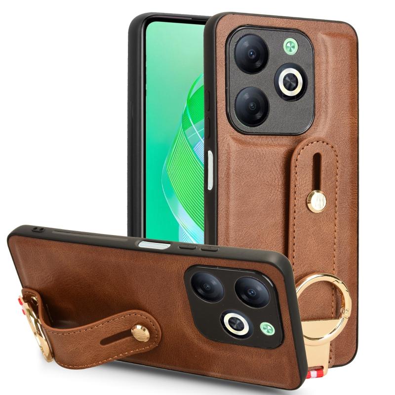 For Infinix Smart 8 Wristband Leather Back Phone Case(Brown)