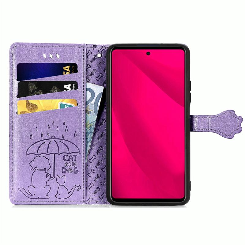 For Infinix Smart 9 Cat and Dog Embossed Leather Phone Case(Purple)