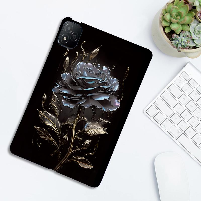For Infinix Xpad Color Painting Pattern Smart Tablet TPU Case(Black Rose)