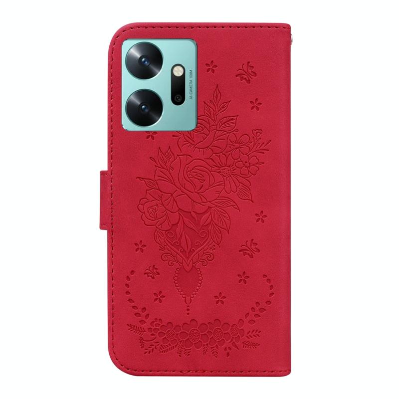 For Infinix Zero 20 Butterfly Rose Embossed Leather Phone Case(Red)