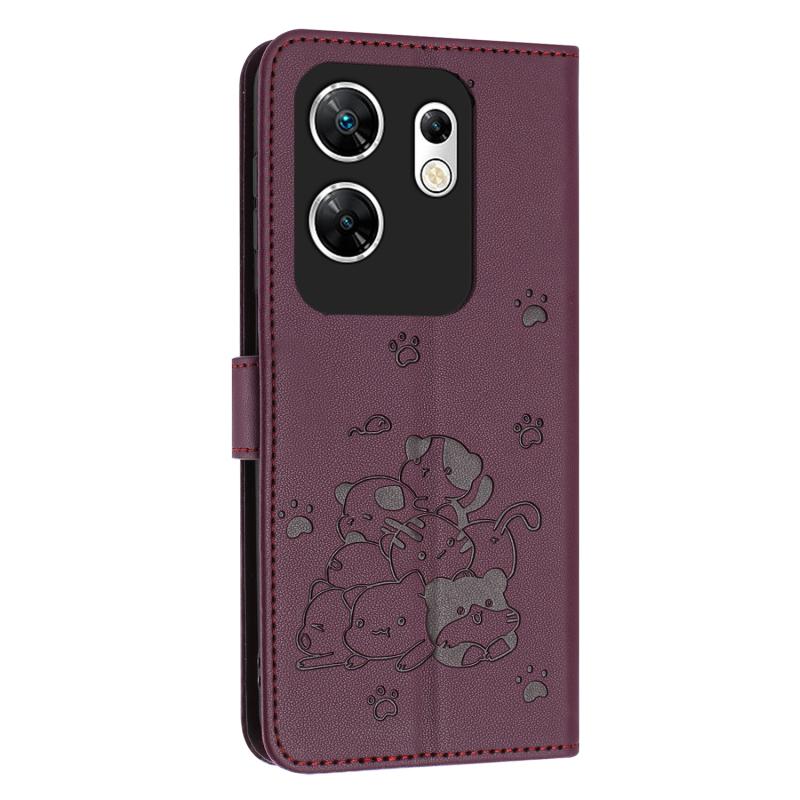 For Infinix Zero 30 4G Embossed Kitten Phone Leather Case with Lanyard(Wine Red)