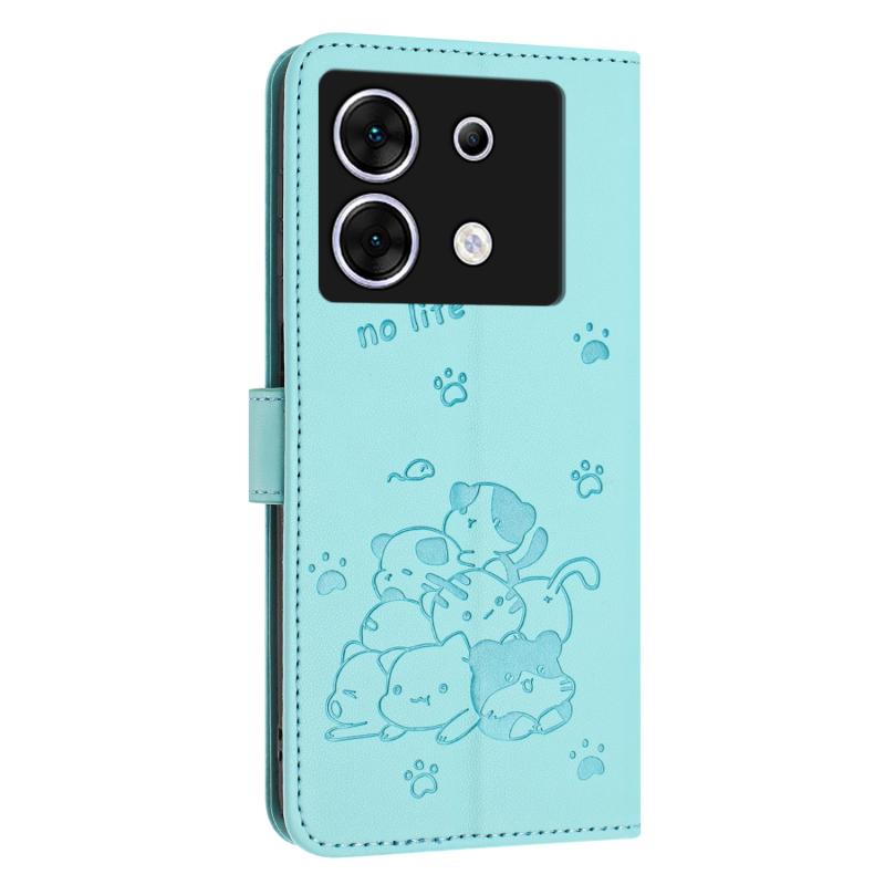 For Infinix Zero 30 5G Embossed Kitten Phone Leather Case with Lanyard(Mint Green)