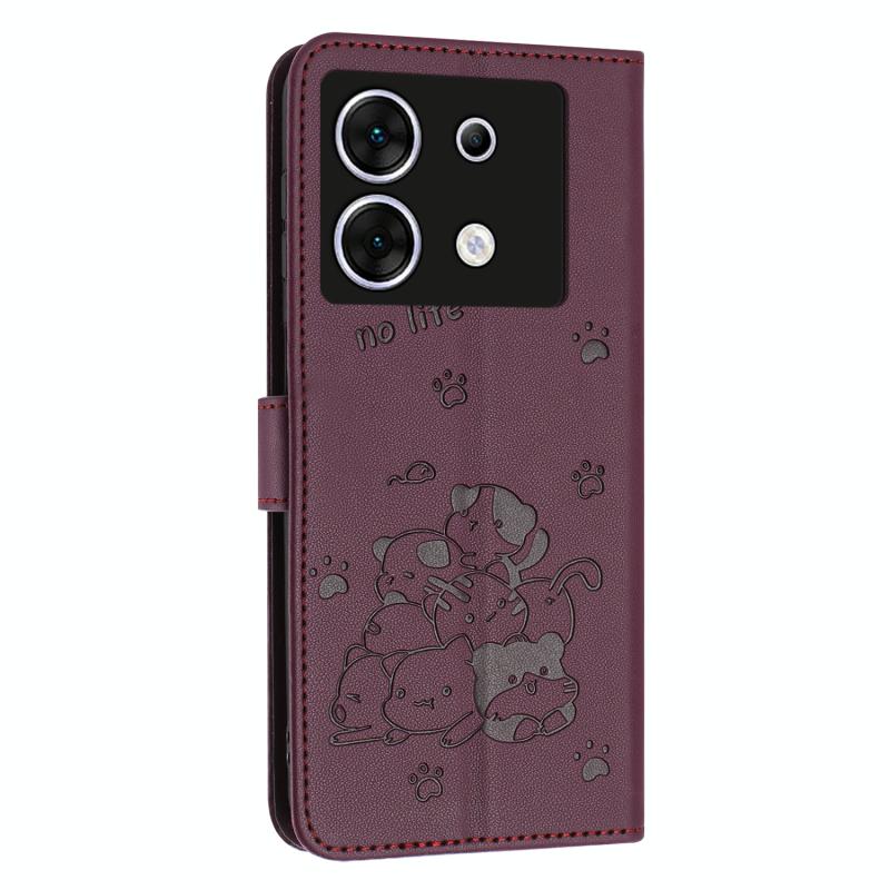 For Infinix Zero 30 5G Embossed Kitten Phone Leather Case with Lanyard(Wine Red)