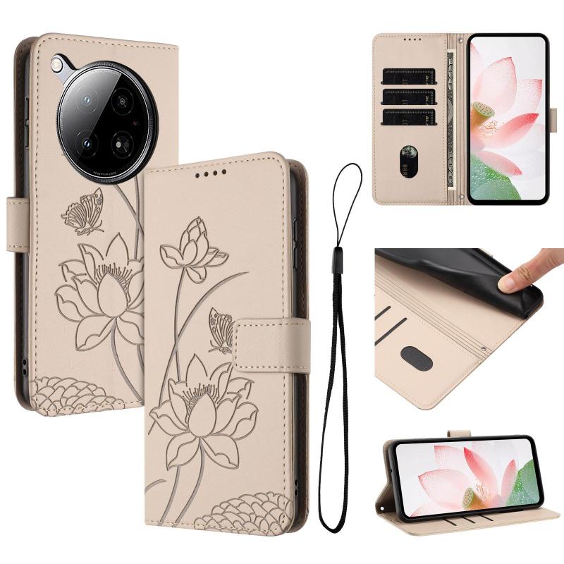 For Infinix Zero 40 4G / 5G Lotus Embossed Leather Phone Case with Lanyard(Beige)