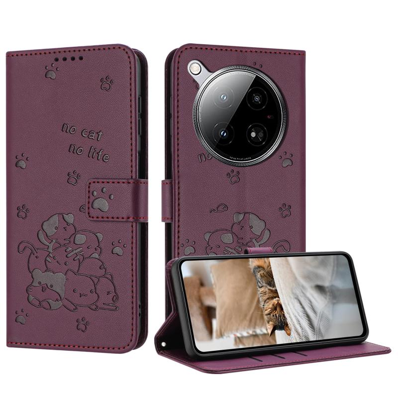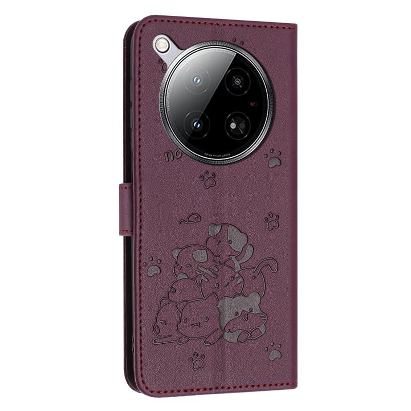 For Infinix Zero 40 4G / Zero 40 5G Embossed Kitten Phone Leather Case with Lanyard(Wine Red)