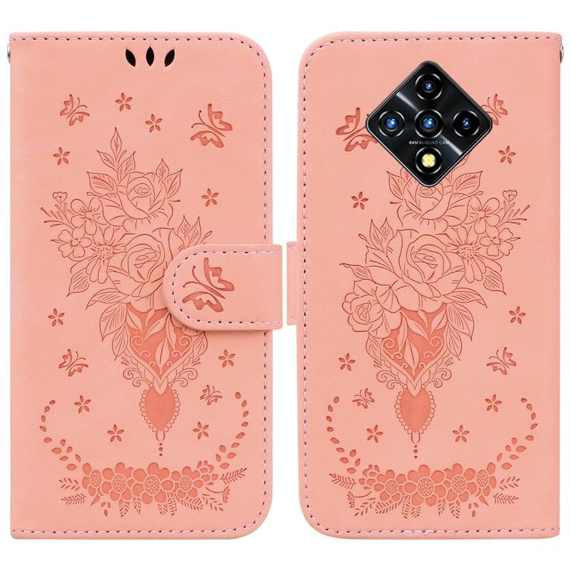 For Infinix Zero 8 X687 Butterfly Rose Embossed Leather Phone Case(Pink)