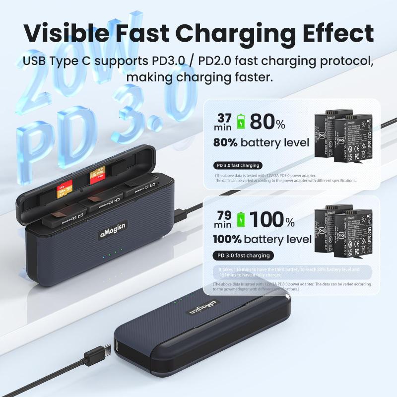 5. Storage box design, in addition to being a battery charger, it is also a battery storage box and MicroSD card storage box, allowing you to create without worries