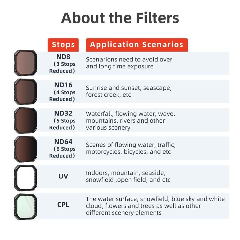 6. The main function of the ND filter is to reduce the amount of light entering the lens, reduce overexposure of the picture, and extend the camera exposure time
