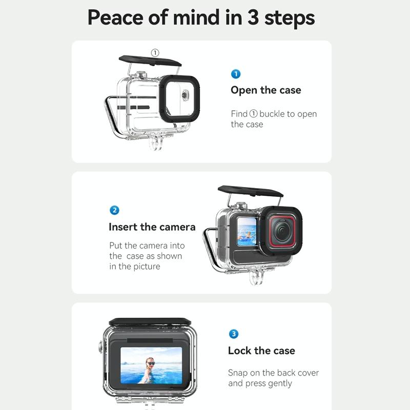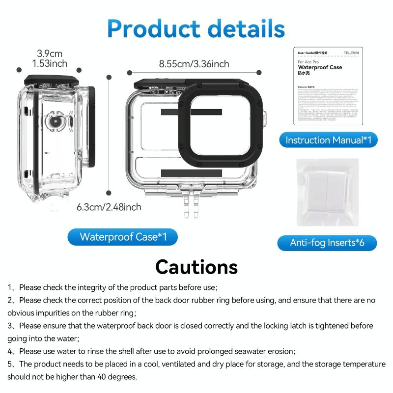 1. The waterproof case is specially designed for Insta360 Ace Pro camera,, is waterproof to a depth of 45 meters, allowing you to enjoy underwater shooting immersively