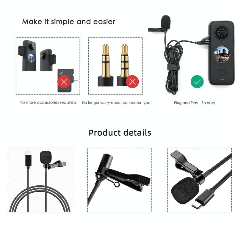 For Insta360 ONE X2 Lavalier Clip Type-C Recording Microphone (Black)