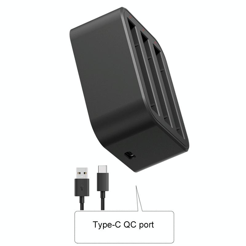 1. Charging indicator, when the charger is powered, battery in socket CH1/CH2/CH3, CH1/CH2/CH3 lights on.