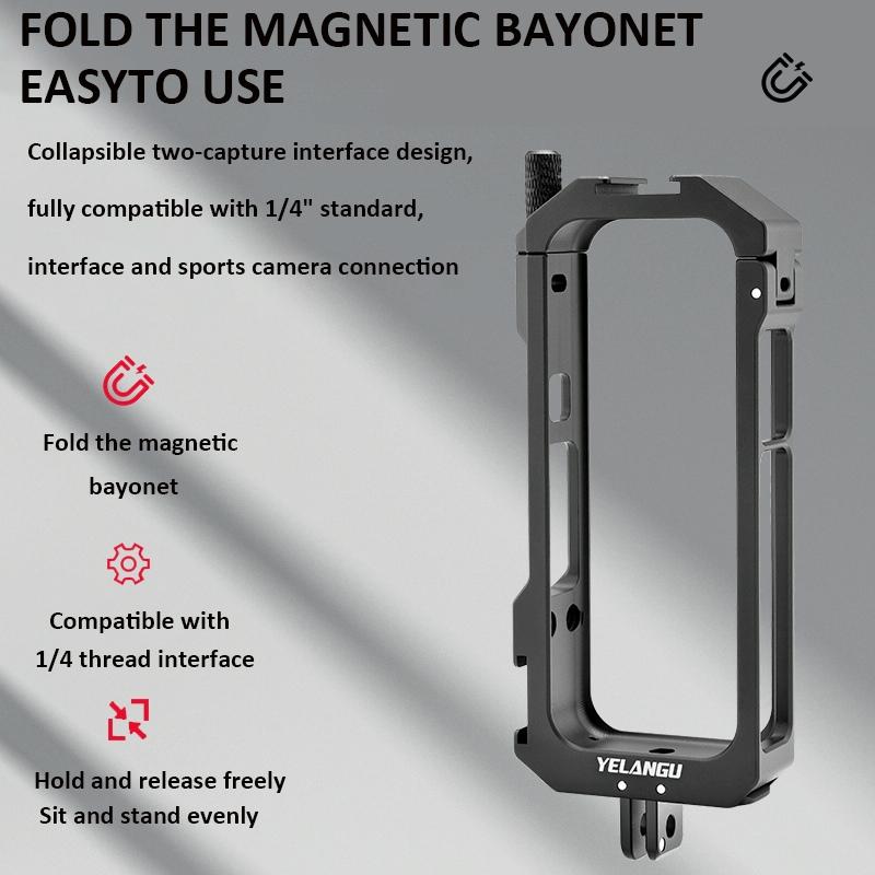 6. Magnetic foldable base: Magnetic interface at the bottom, the bottom is designed with magnetic for GoPro interface, with a 1/4 interface in the middle, compatible with most tripods.