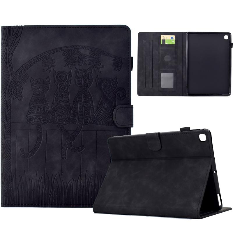 For iPad 10.2 2021 / 2020 / 10.5 2019 Cats Embossed Leather Smart Tablet Case(Black)