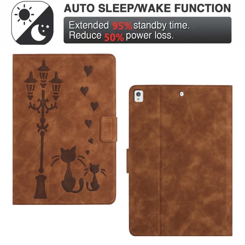 For iPad 10.2 2021 / 2020 / 10.5 2019 Embossed Couple Cat Smart Tablet Leather Case(Brown)
