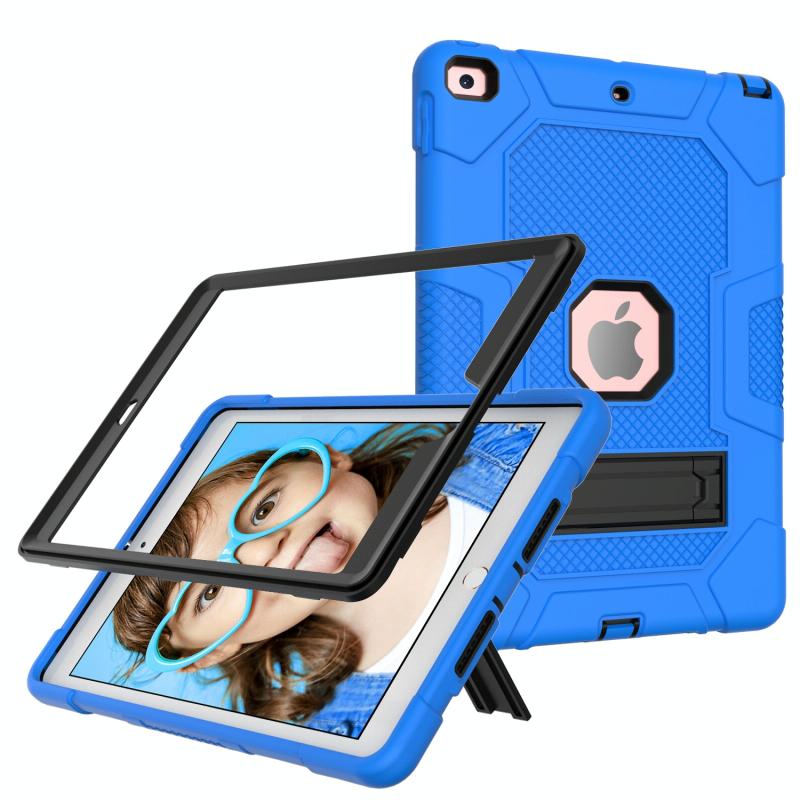 For iPad 10.2 2021 / 2020 / 2019 Contrast Color Robot Shockproof Silicone + PC Protective Case with Holder(Dark Blue Black)