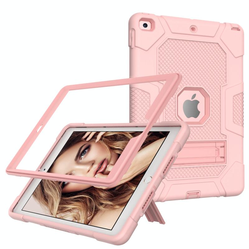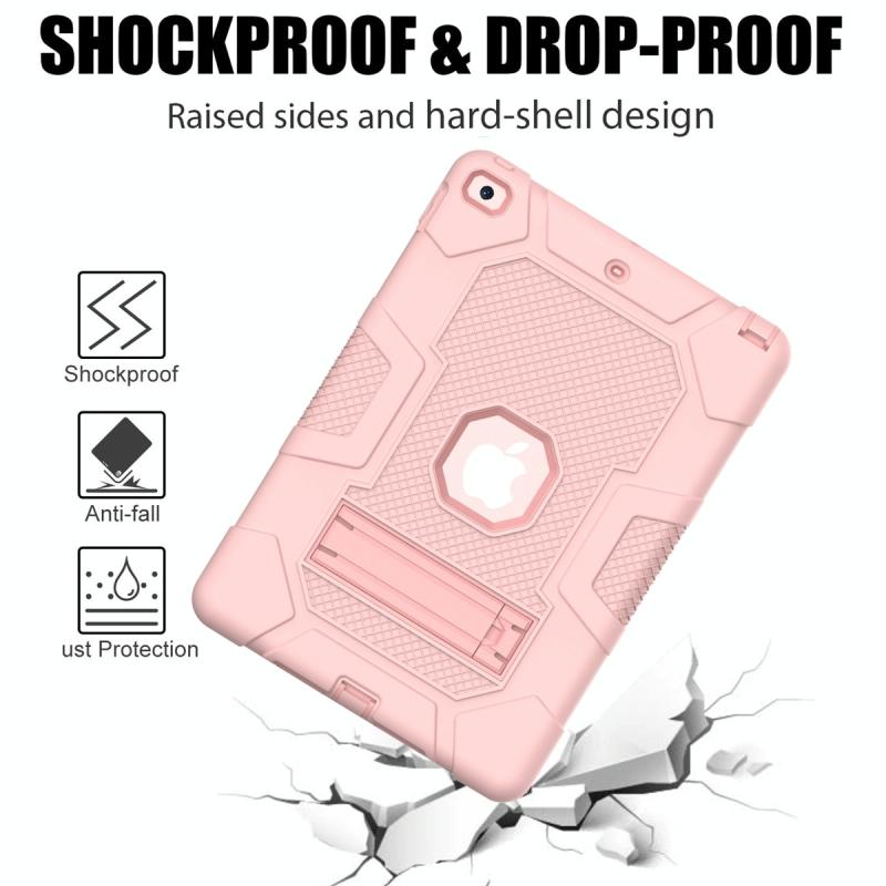 For iPad 10.2 2021 / 2020 / 2019 Contrast Color Robot Shockproof Silicone + PC Protective Case with Holder(Rose Gold)