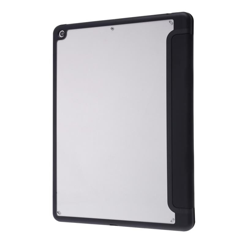 For iPad 10.2 2021 / 2020 / 2019 Deformation Transparent Acrylic Horizontal Flip PU Leather Case with Multi-folding Holder & Sleep / Wake-up Function & Pen Slot(Black)