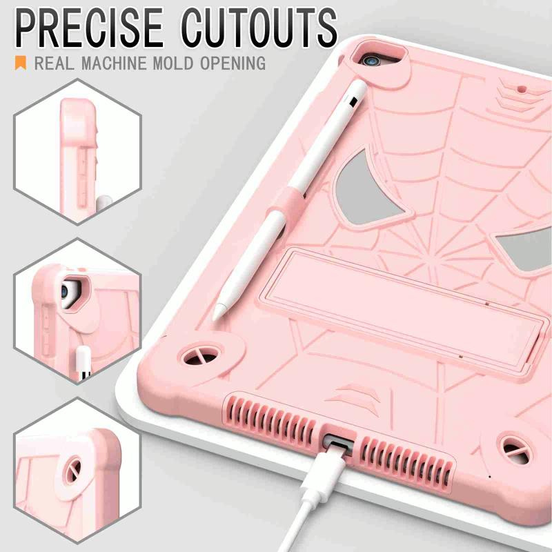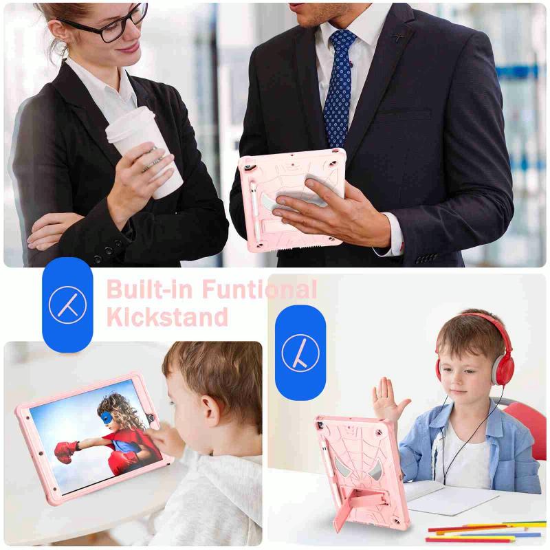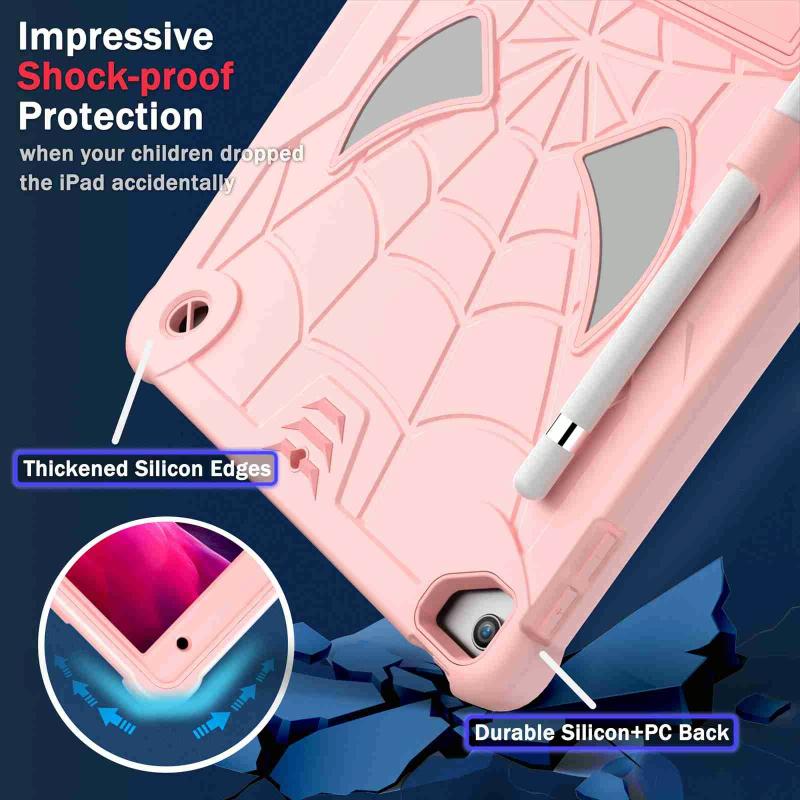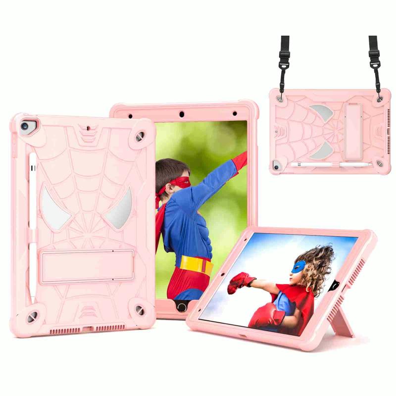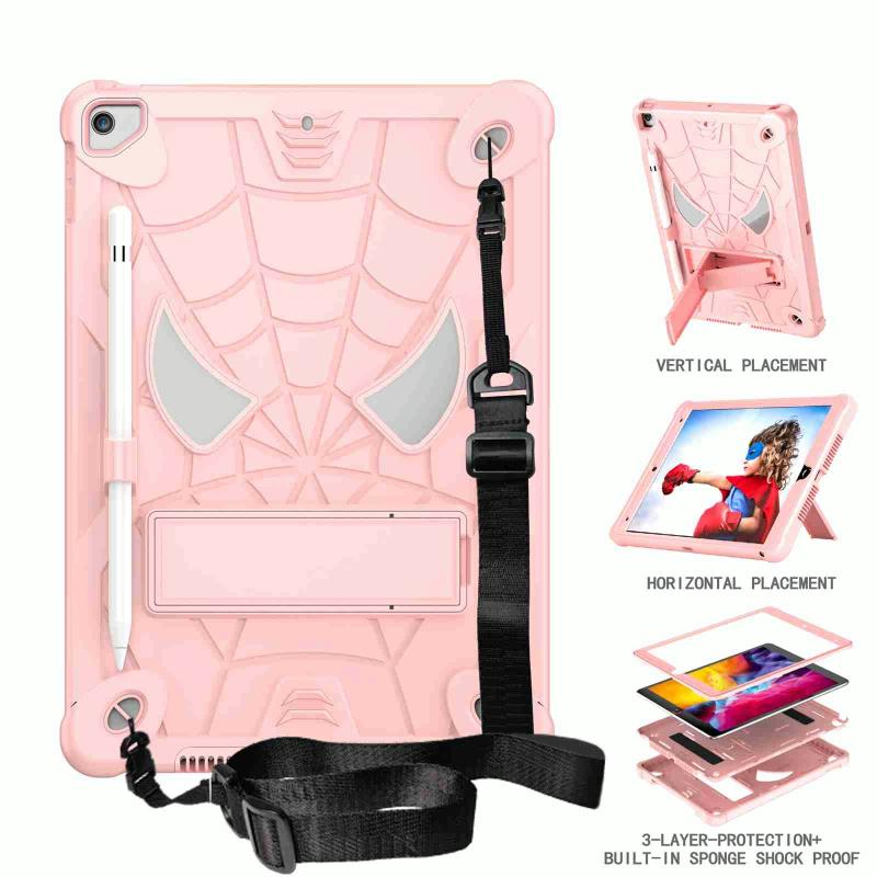 For iPad 10.2 2021 / 2020 / 2019 Spider Texture Silicone Hybrid PC Tablet Case with Shoulder Strap(Rose Gold)