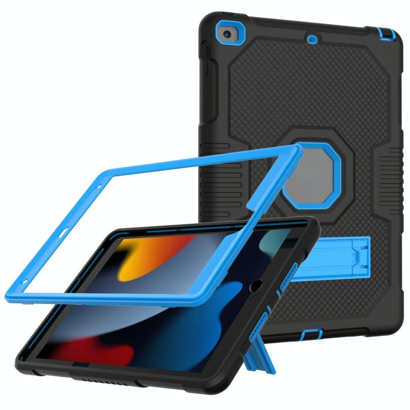 For iPad 10.2 2021 Contrast Color Robot Shockproof Silicone + PC Tablet Case(Black Blue)