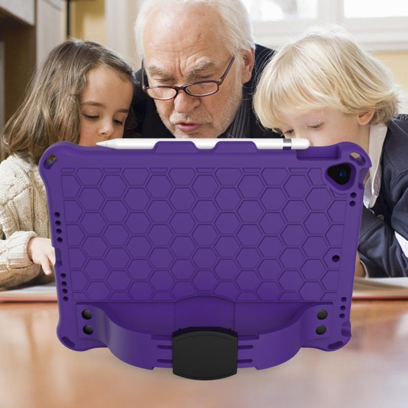 For iPad 10.2 Honeycomb Design EVA + PC Four Corner Shockproof Protective Case with Straps(Purple+Black)