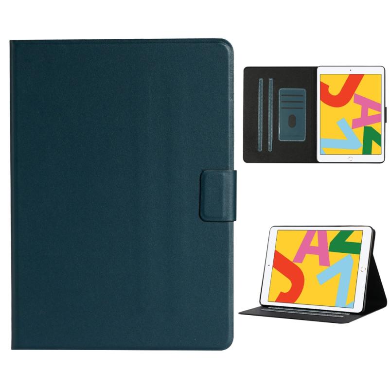 For iPad 10.2 Solid Color Horizontal Flip Leather Case with Card Slots & Holder & Sleep / Wake-up Function(Dark Green)