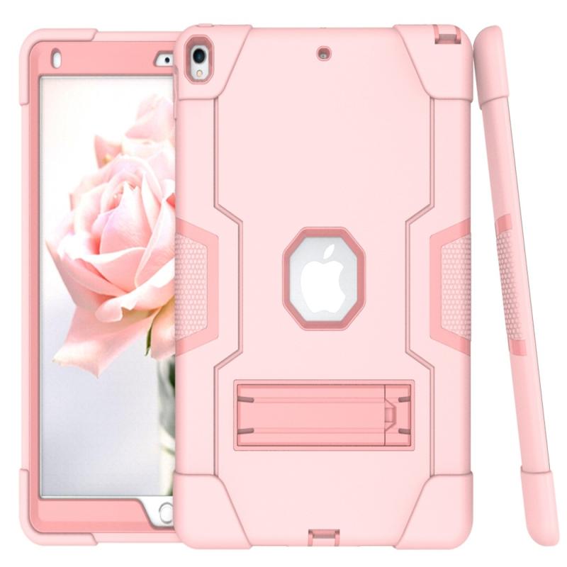 For iPad 10.5 Contrast Color Silicone + PC Combination Case with Holder(Rose Gold)
