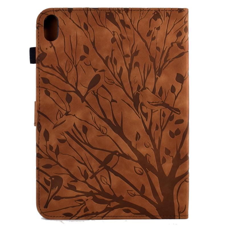For iPad 10.9 2022 / 2025 Fortune Tree Pressure Flower PU Tablet Case with Wake-up / Sleep Function(Brown)
