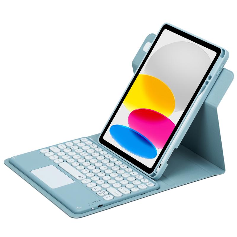 For iPad 10th Gen 10.9 2022 Round Button 360 Degree Rotatable Bluetooth Keyboard Leather Case with Touchpad(Mist Blue)