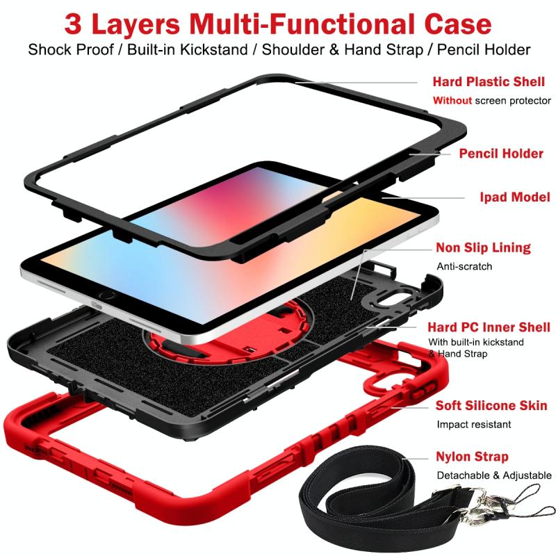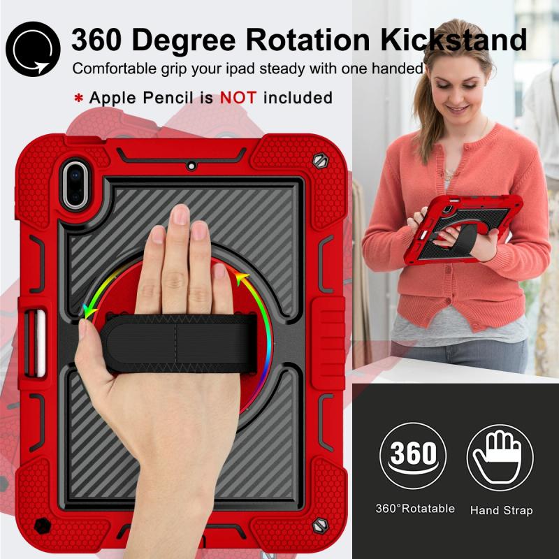 For iPad 2025 / 2022 360 Degree Rotation Shockproof Silicone + PC Tablet Case(Red+Black)